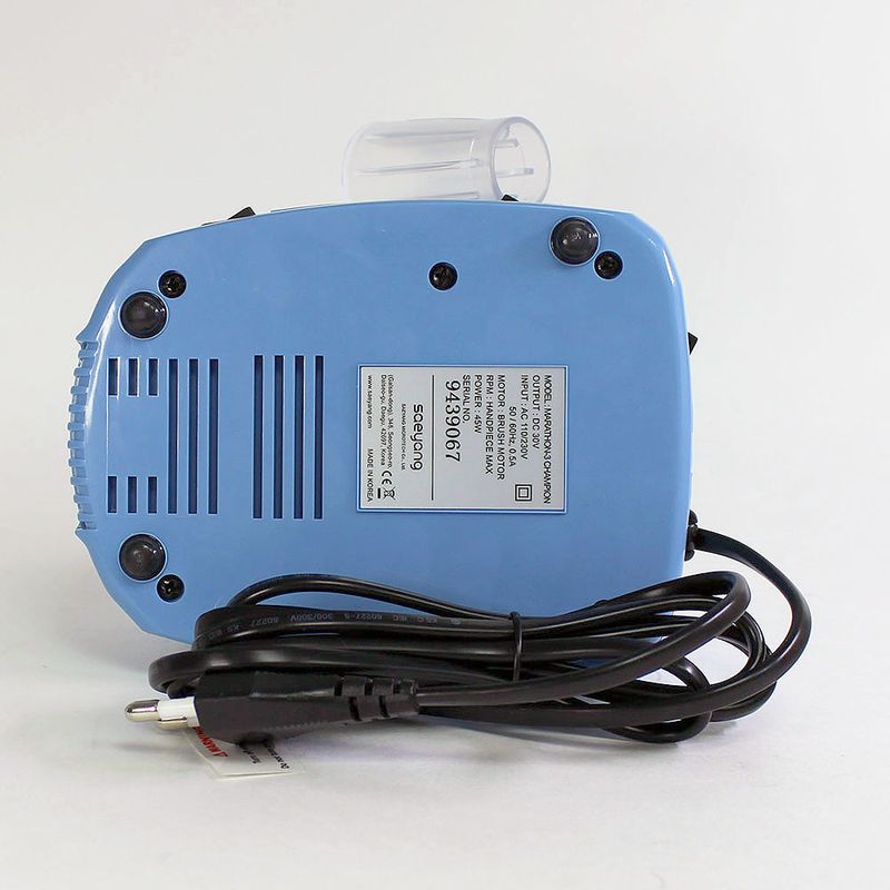 Оригинальный блок управления, произведен в Южной Корее на заводе Saeyang, официально поставляется в Россию, имеет гарантийный талон производителя и инструкцию на русском языке. Блок управления Marathon 3 Champion Blue мощностью 45 Вт, с реверсом. Цвет - Голубой. Питание от сети 220В, вилка евростандарт. С защитой от перегрузки. Регулировка скорости - Плавная. Также в комплекте: держатель наконечника (стакан) на корпусе. Без педали.