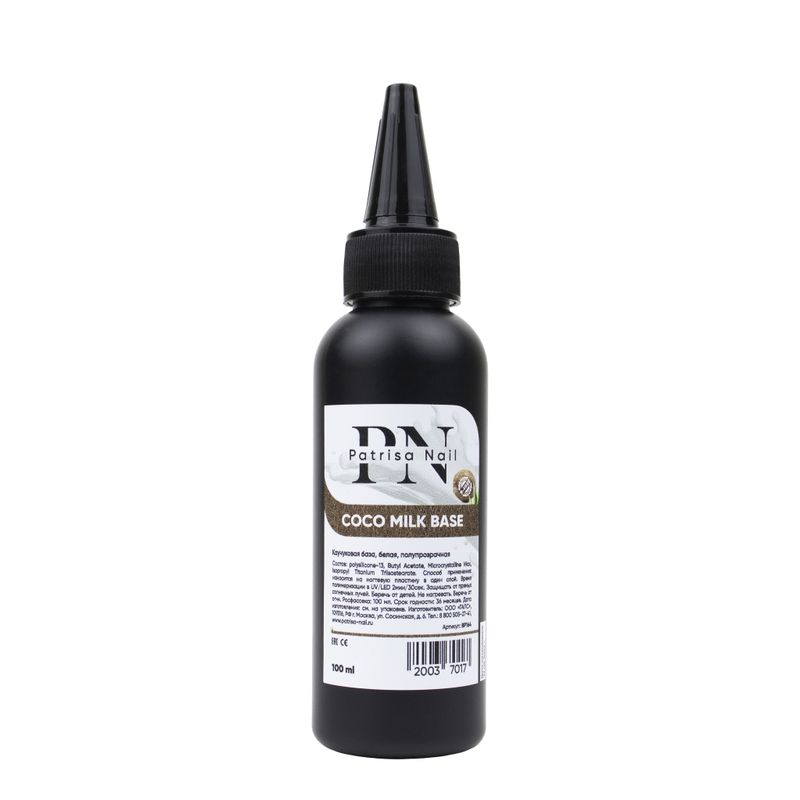 Patrisa Nail, База каучуковая для гель-лака белая Coco milk base 100 мл