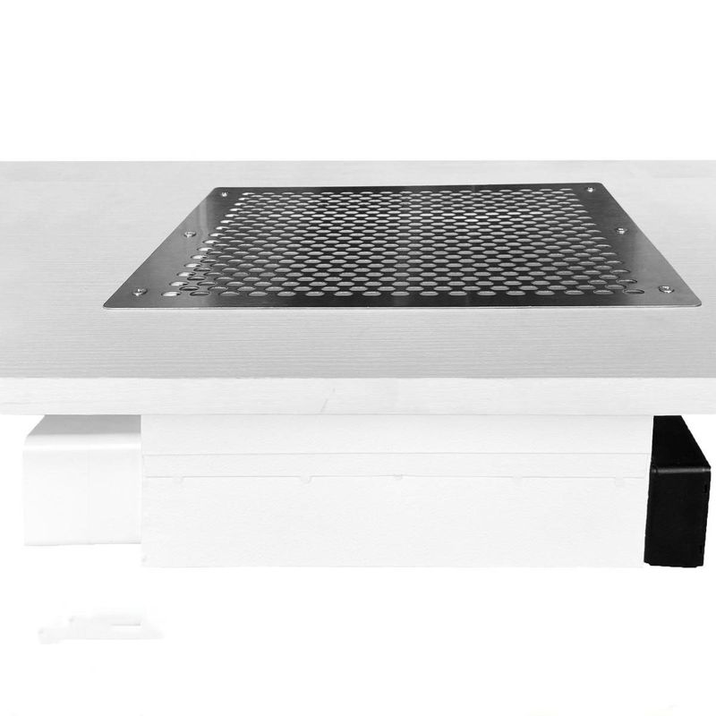 На столе у Вас будет потрясающая решетка из нержавеющей стали, перфорации на решетке выполнена специальным прессом, чтобы края отверстий были приятными на ощупь и не могли поцарапать руку мастера или клиента.